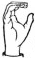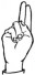 На ћирилици написано ПАУН ТАСИЋ састоји се из 9 слова [?]. Исписано ћириличном једноручном азбуком за глувонеме: